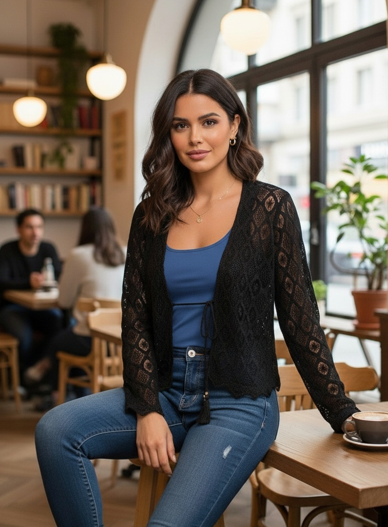 Styling Tips: • Layer over a simple black dress for instant drama • Pair with bold accessories for a statement-making look • Add metallic jewelry for exotic glamour • Style with neutral tones to let the kimono be the star